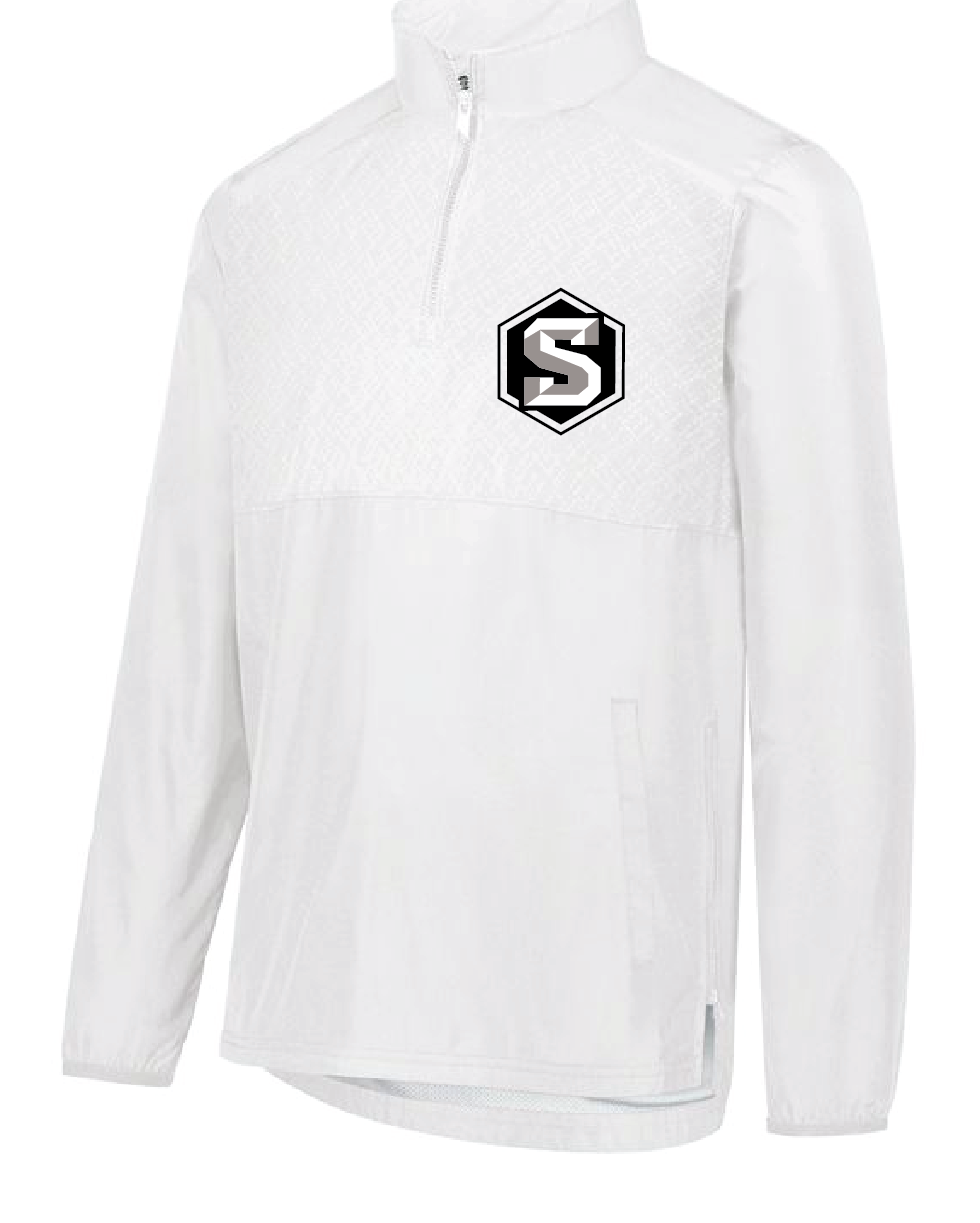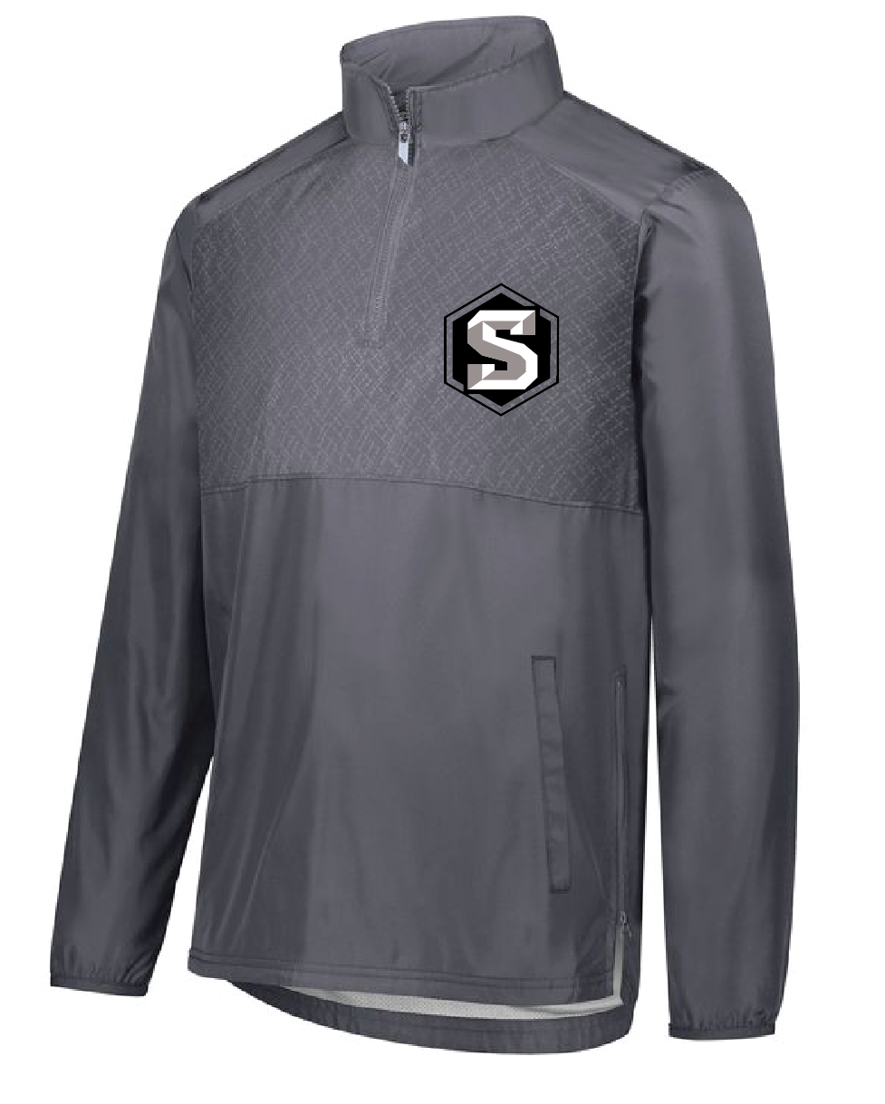 Quarter-zip pullover with wind and water-resistant Micron™ polyester, subtle embossed inserts, and lined interior for all-season use.